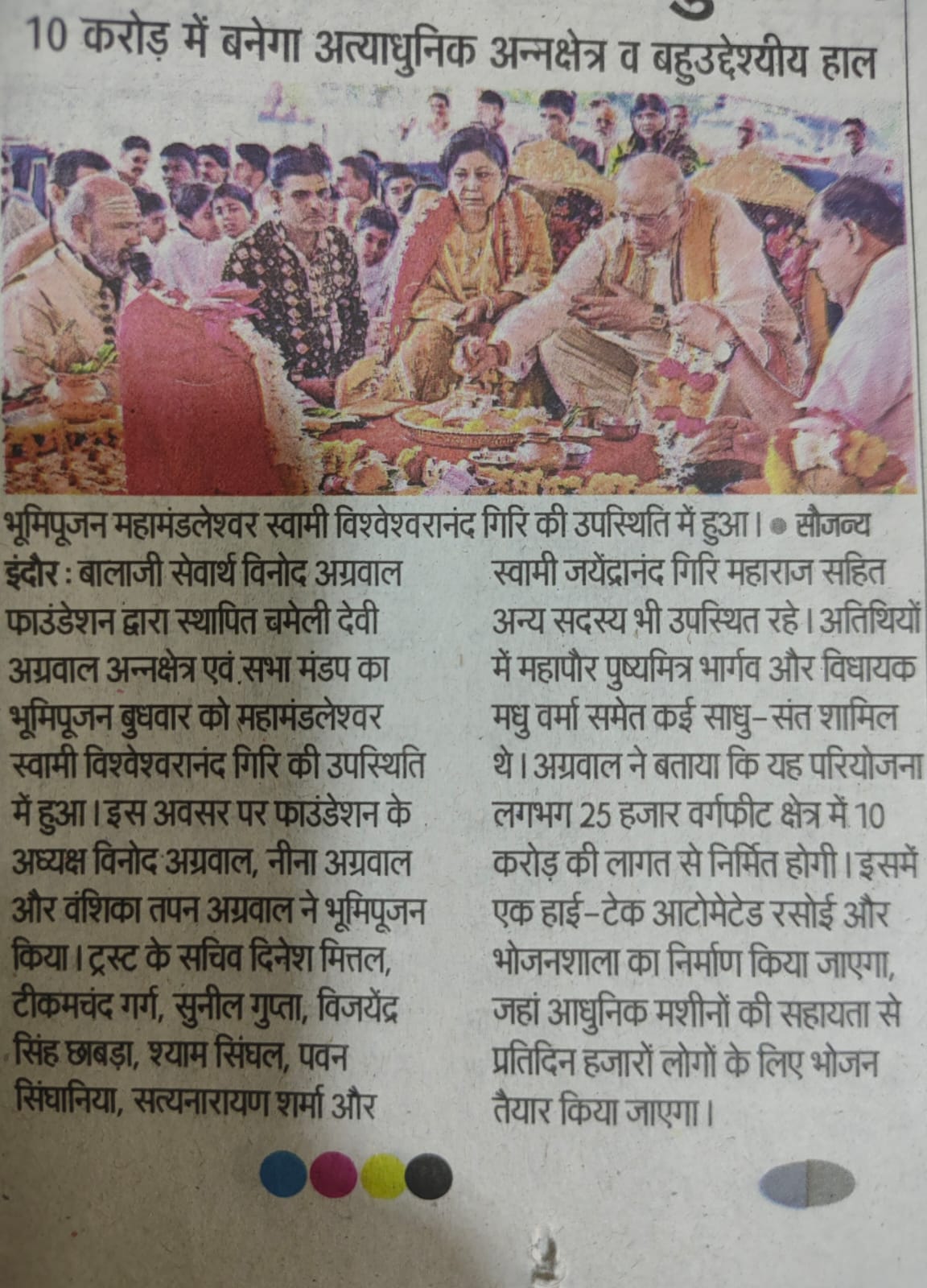 “Bhomi Pujan of Chamelidevi Agarwal Annachetra” by the Balaji Sewarth Vinod Agarwal foundation on 14th January, 2022.