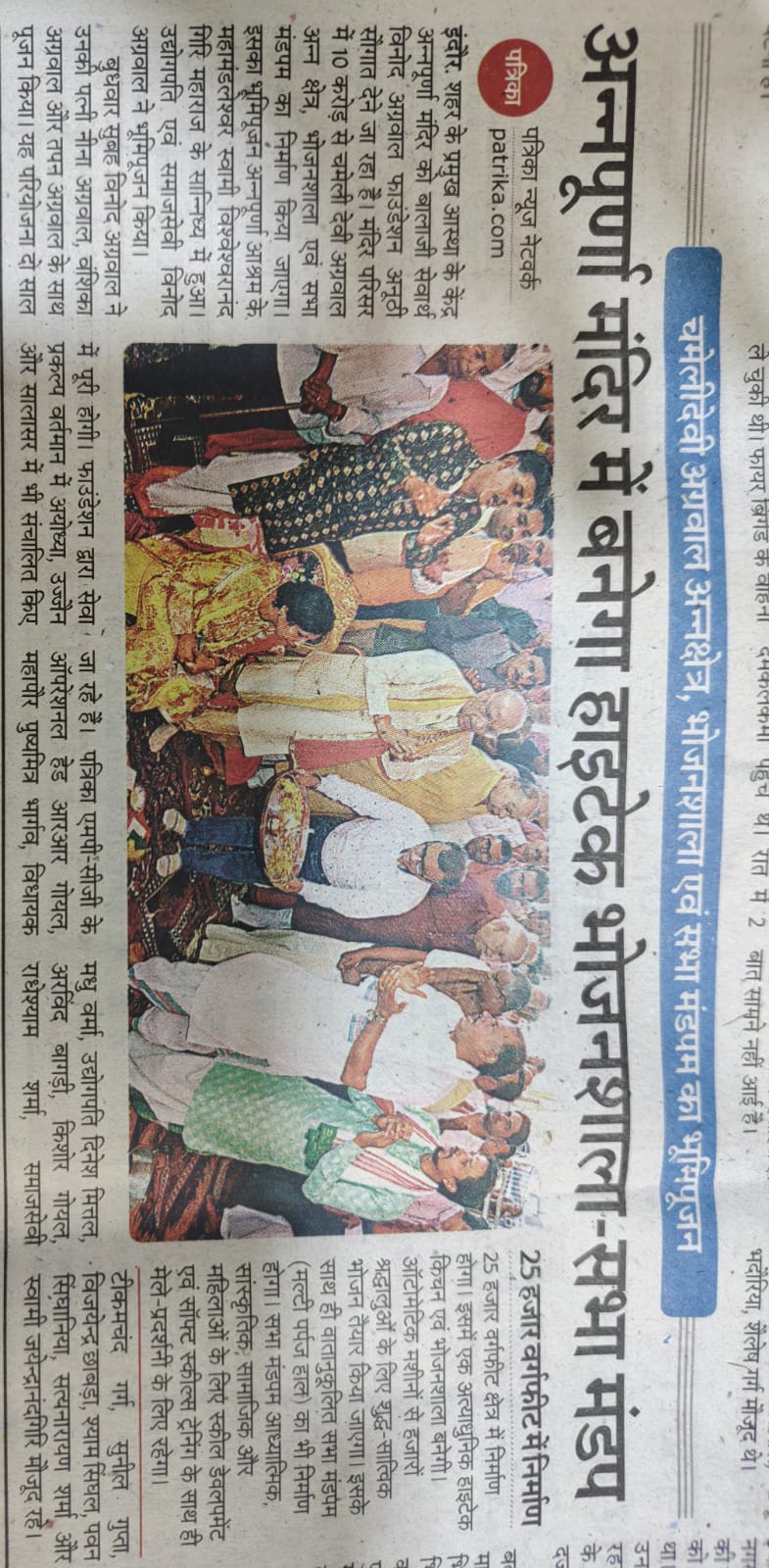 Agrawal in collaboration with Mahakal Temple Trust Committee has decided to establish Anna Kshetra