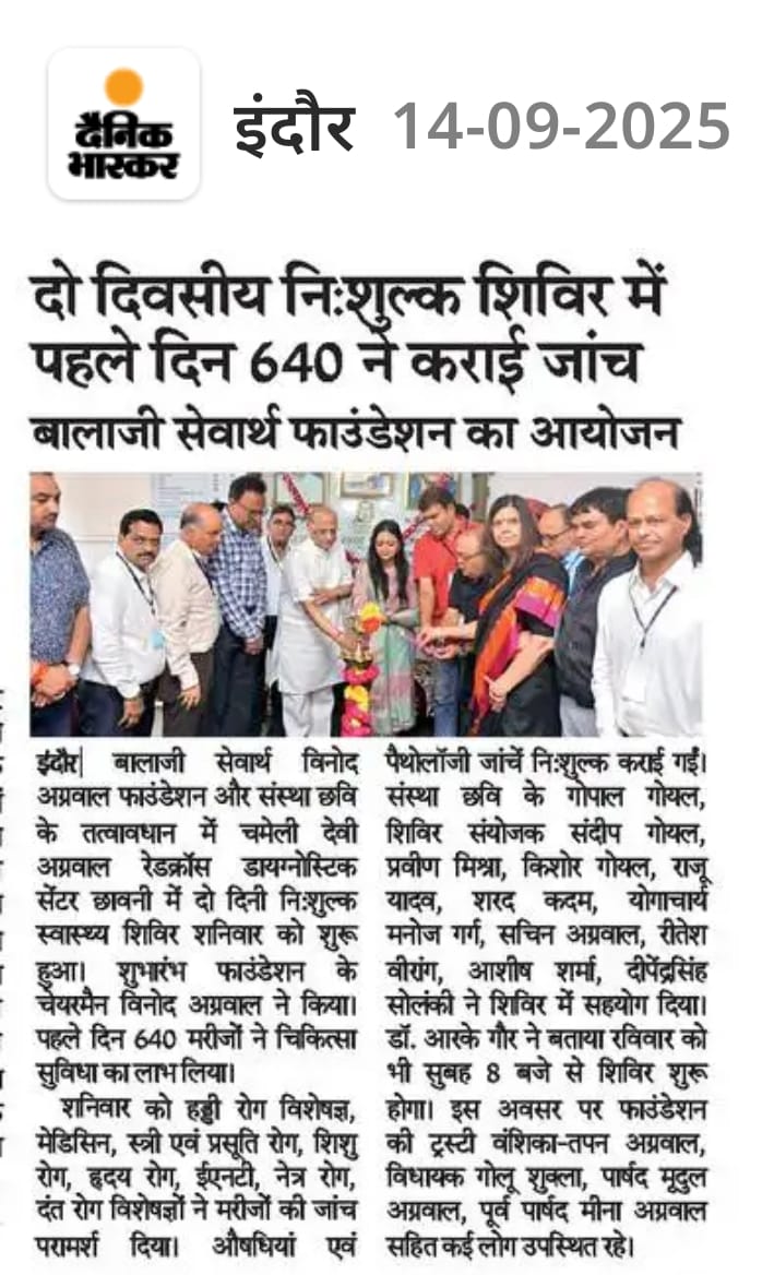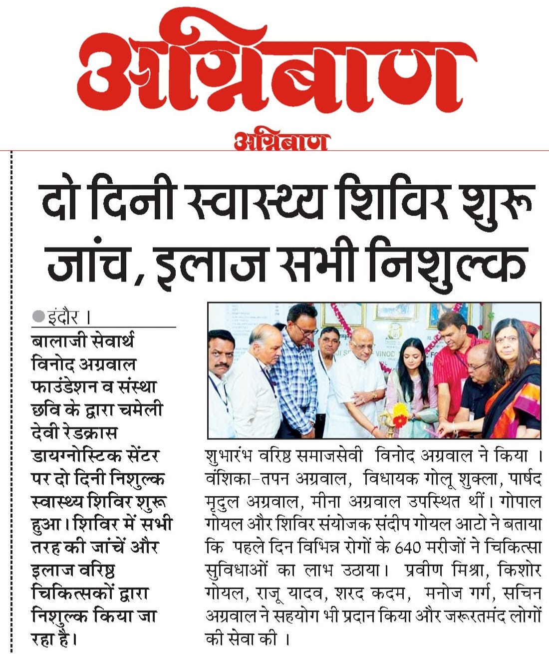 The camp was inaugurated with a function where dignitaries like Shri Sankar Lalwani, Ex Congress MP, Dr. Ilayaraja T (IAS), Prem Ji Goyal, Tikam Ji Garg, Rajesh Bansal, Arvind Bagdi and other dignitaries of Indore were present. During the camp, senior members of the Agarwal Samaj visited the camp and praised the services and thanked Shri Vinod Agarwal for taking such a social step in healthcare for the people of Indore.